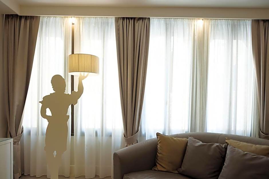Spacious, air-conditioned junior suite decorated with white and gold color schemes. Combining Venetian-style details with modern touches, it comes with a living area with armchairs and sofa, a mini-bar, and both bathrobes and slippers. High-speed WiFi is free. Also includes a kettle and coffee machine.